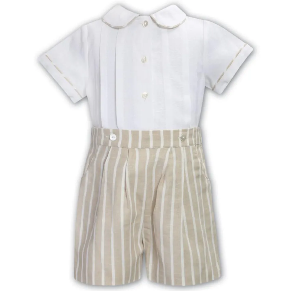 This adorable 2-piece set is perfect for your little one’s special occasions! The ivory shirt is crisp and stylish, with a matching striped, beige short. The shorts come with handy pockets and a button closure at the waist for a snug, comfy fit. Whether it’s a wedding, birthday, or any celebration, your little gentleman will look as sharp as ever. It’s the perfect combination of class and comfort for all those memorable moments!
