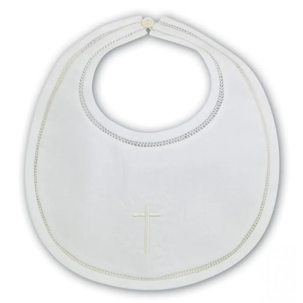 The perfect accessory for a special ceremonial occasion, featuring an embroidered cross and delicate cut-out detailing.