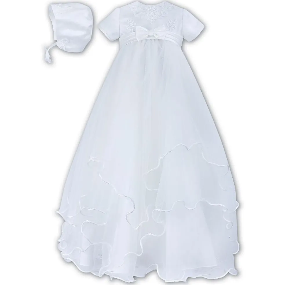 WHITE SHORT SLEEVED CHRISTENING ROBE & BONNET