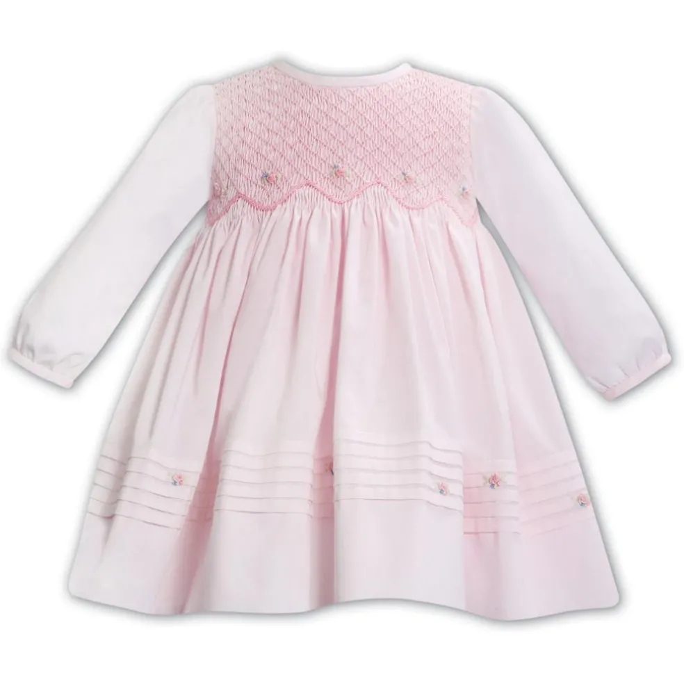 The epitome of elegance, our traditional baby girl’s dress is perfect for any occasion. Featuring exquisite floral embroidery and delicate hand smocking, this charming dress is completed with a dainty pearlescent button fastening at the cuffs and back.