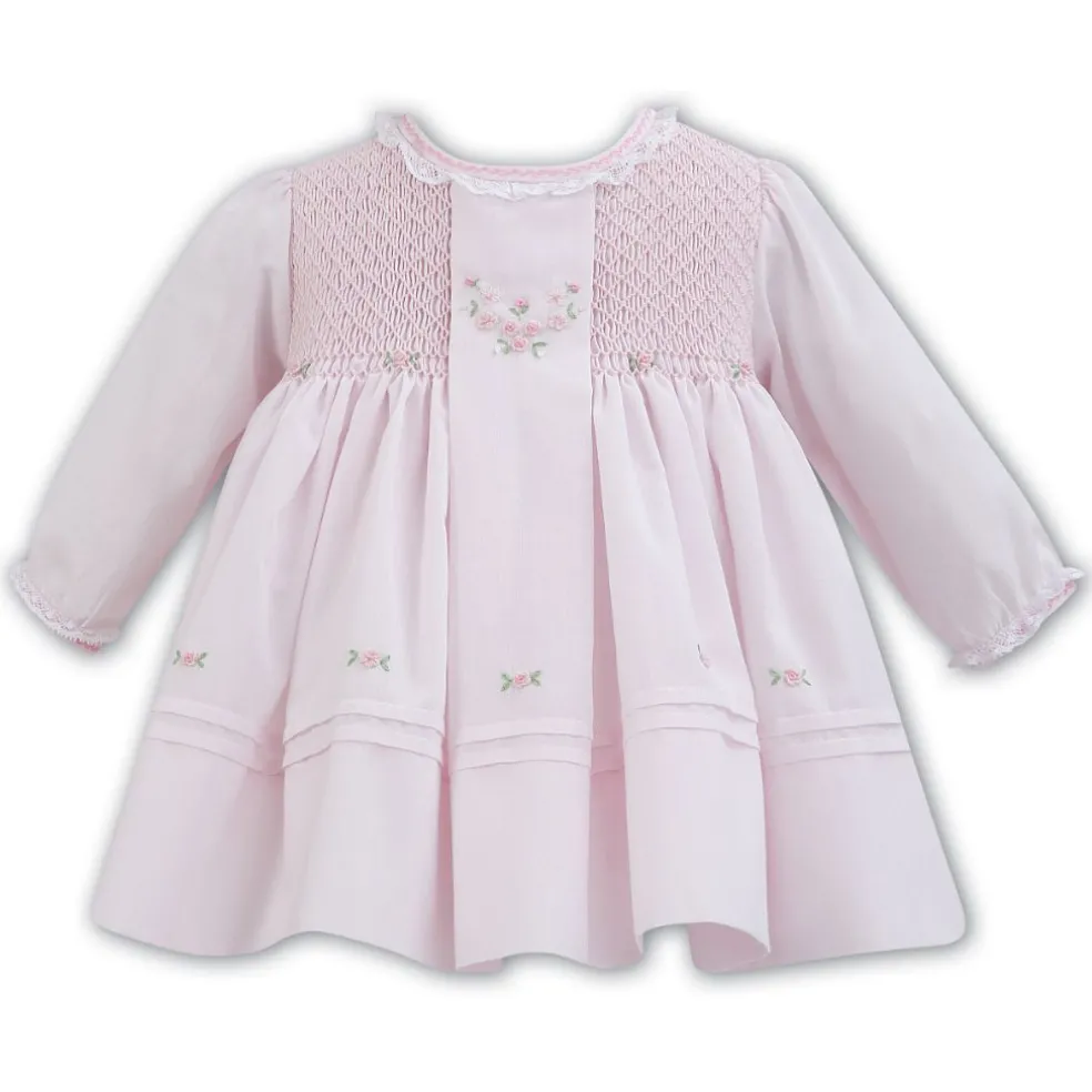 Long sleeved fully lined dress with hand smocking and hand embroidered detailing.