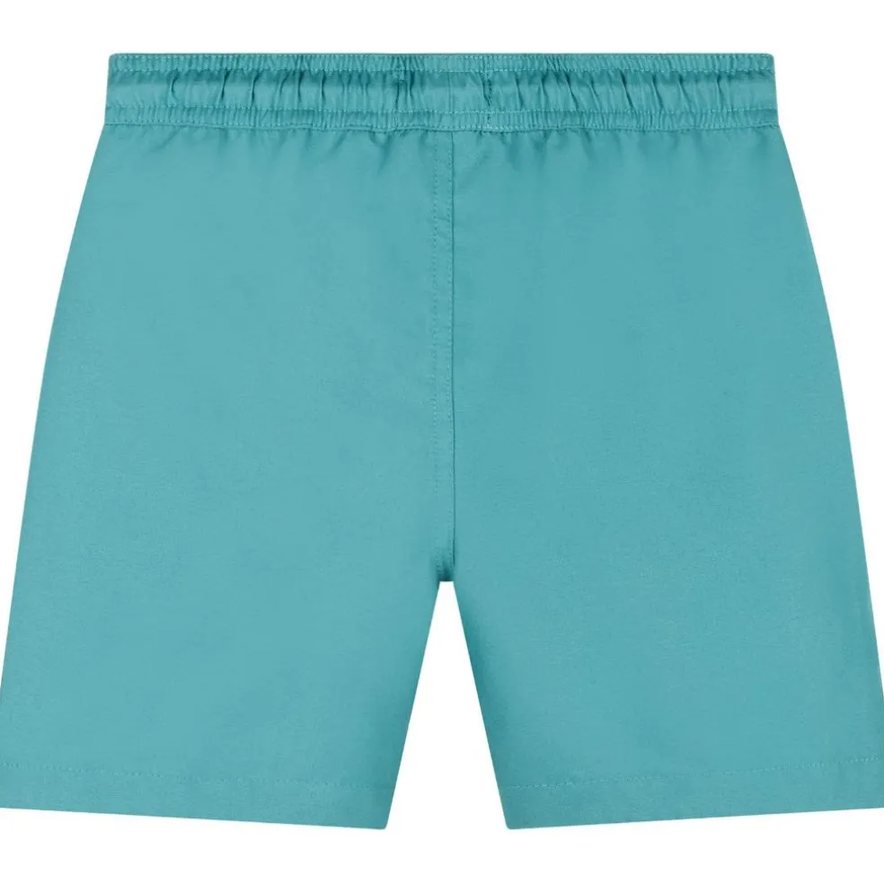 Quick dry polyester surfer / swim shorts with elasticated waist, side pockets, and printed Timberland logo on the leg.