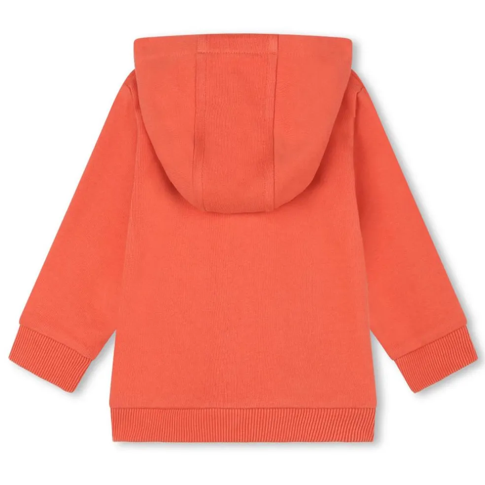 Zip up hooded top with a kangaroo pocket on the front and Timberland printed logo on the chest.