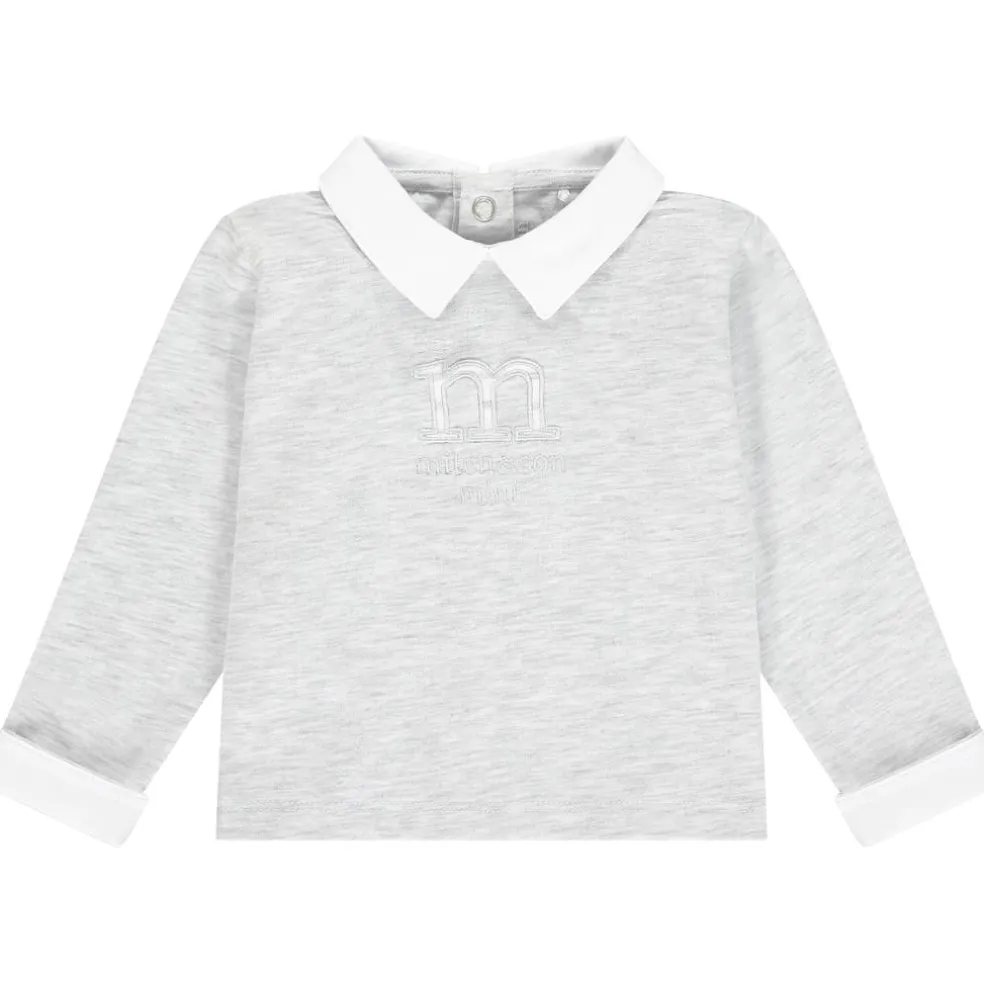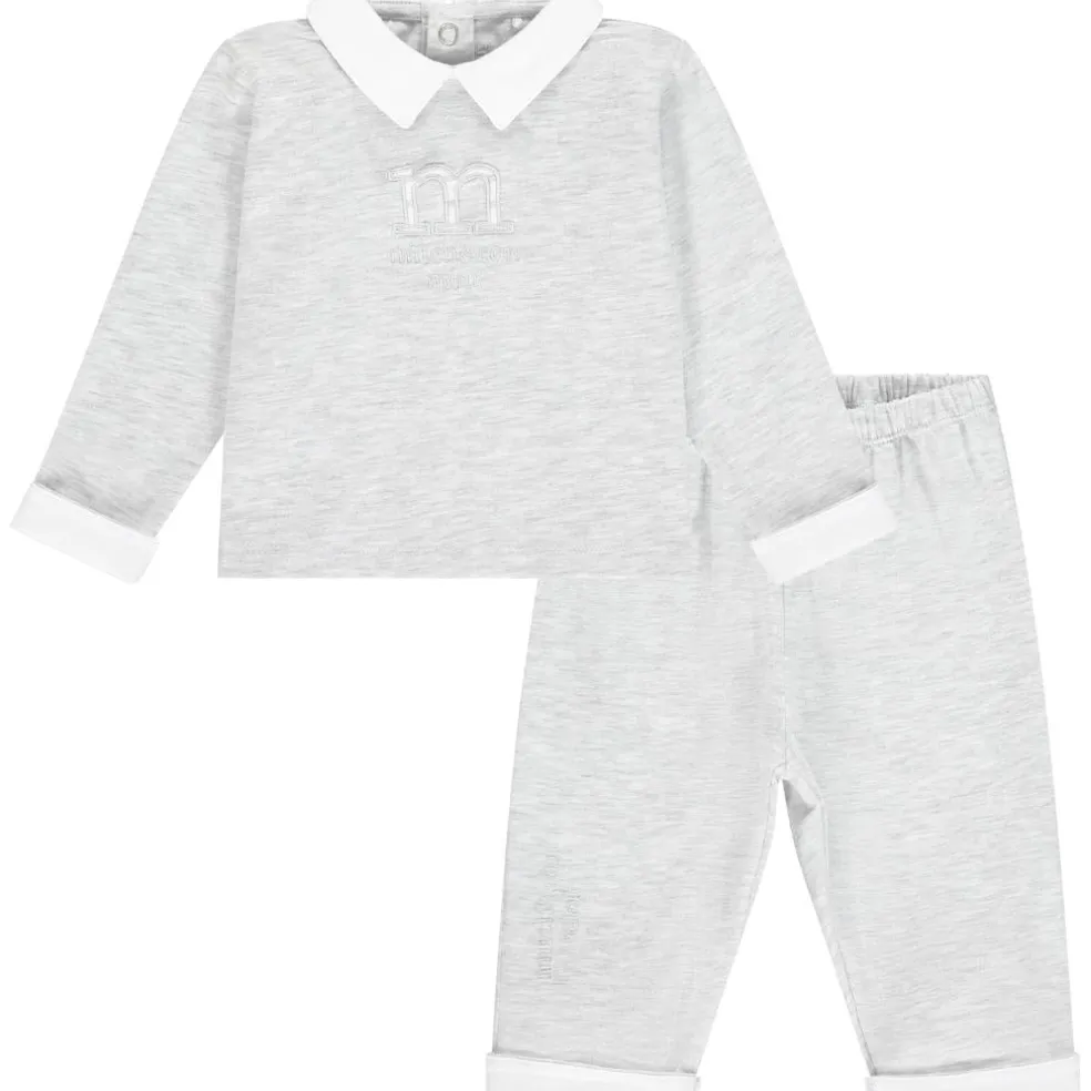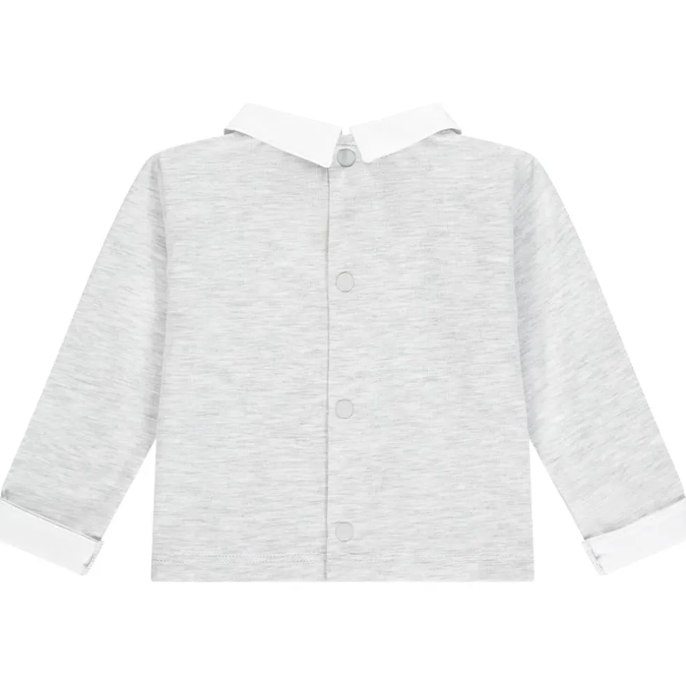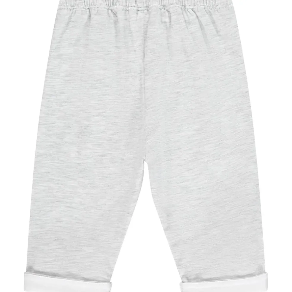 Jersey polo set with contrast collar and turn ups finished with embroirdered stripe logo art work on front of polo and embroidered logo on leg.